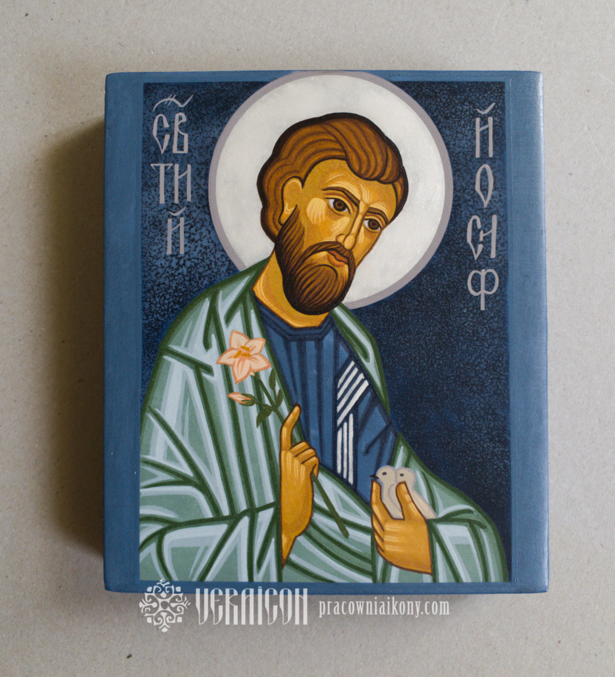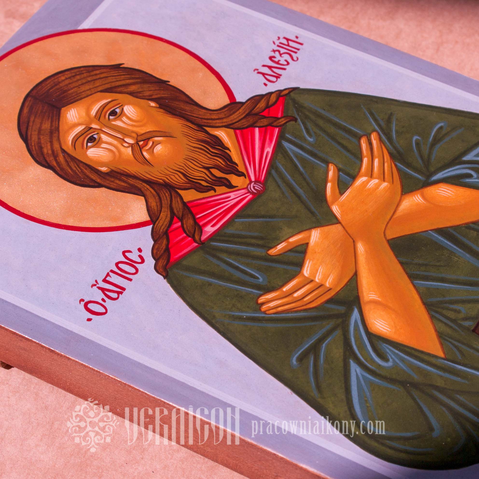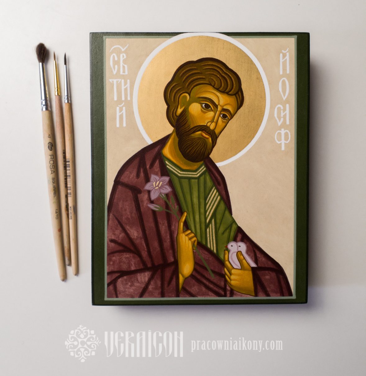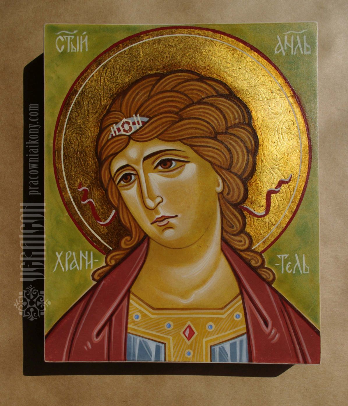 Technique: egg tempera, gold leaf imitation on limewood board. Dimensions: 55×42 cm, 2016-2023.